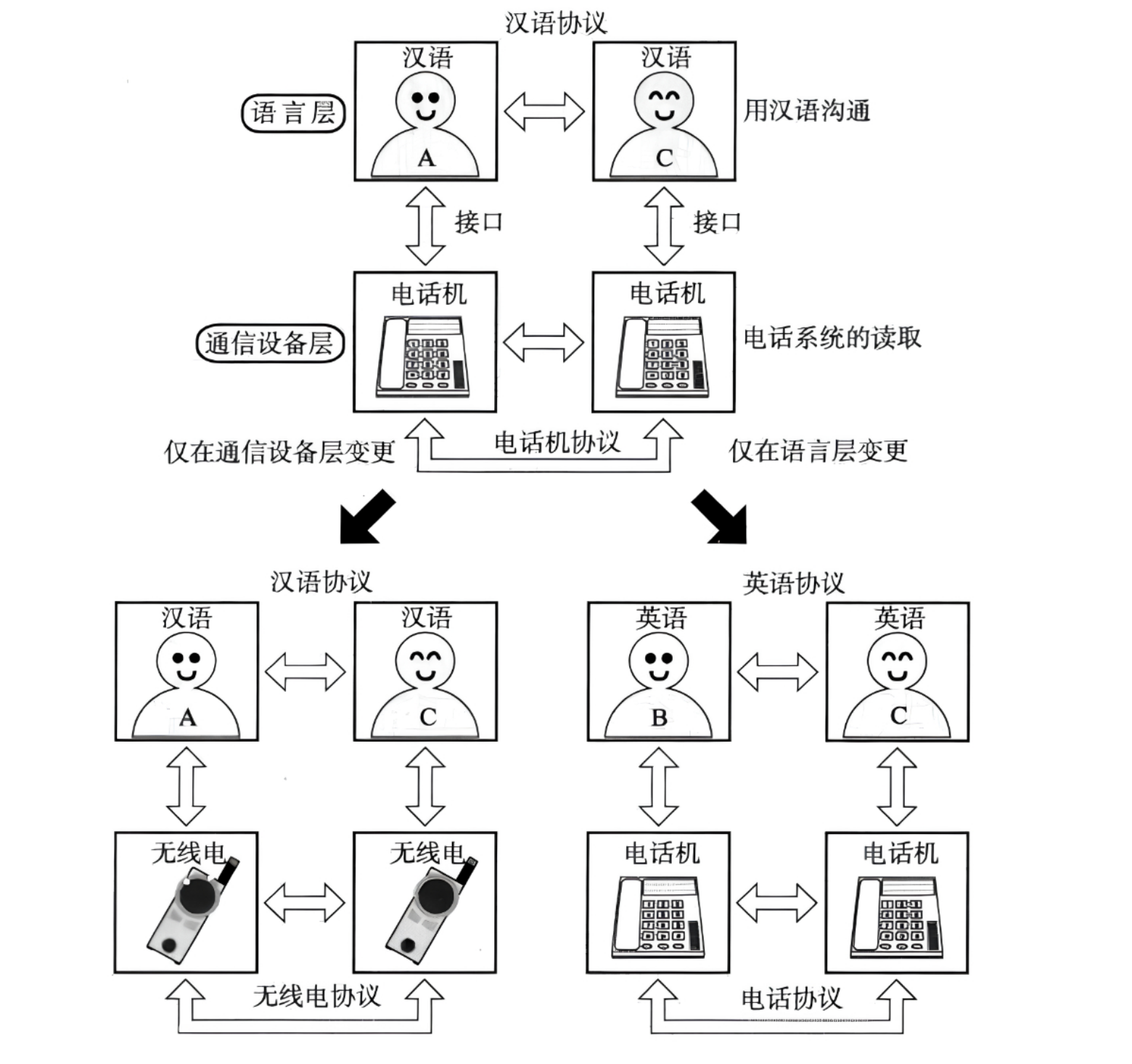 - 语言层(人和电话之间的交流协议)